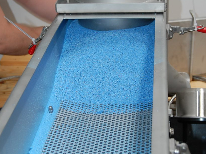 Schüttgüter präzise trennen: Effiziente Trennung von Kunststoffgranulat in große und kleine Teile mit Siebfördersystem und Vibrationstechnik