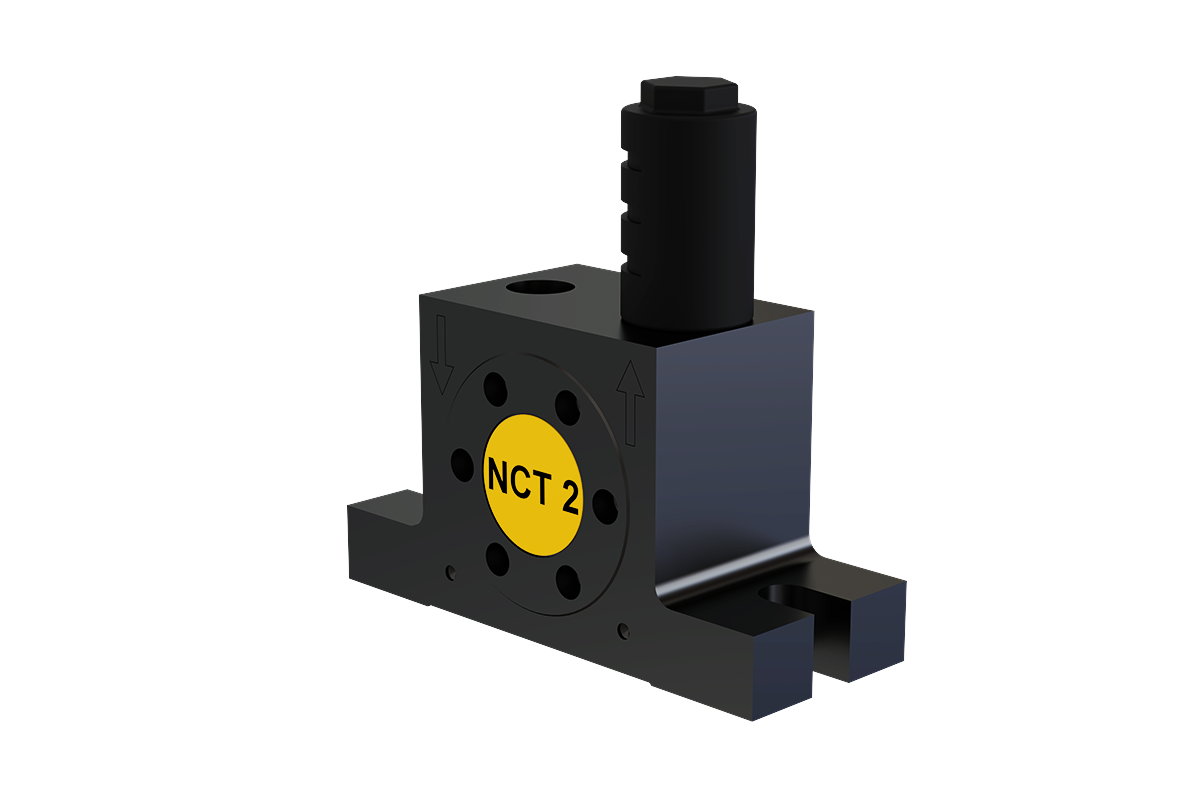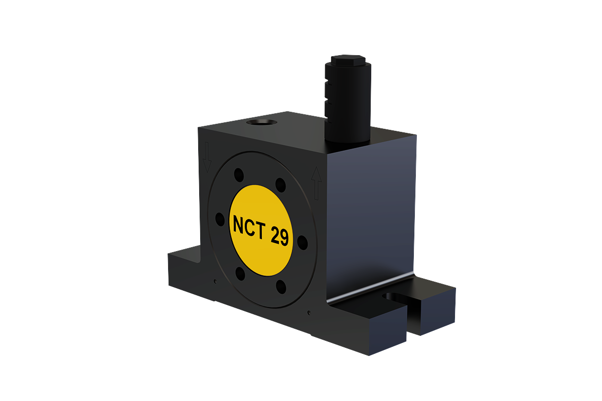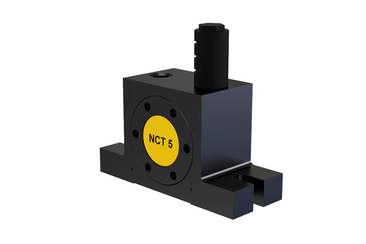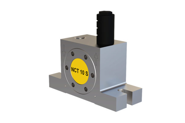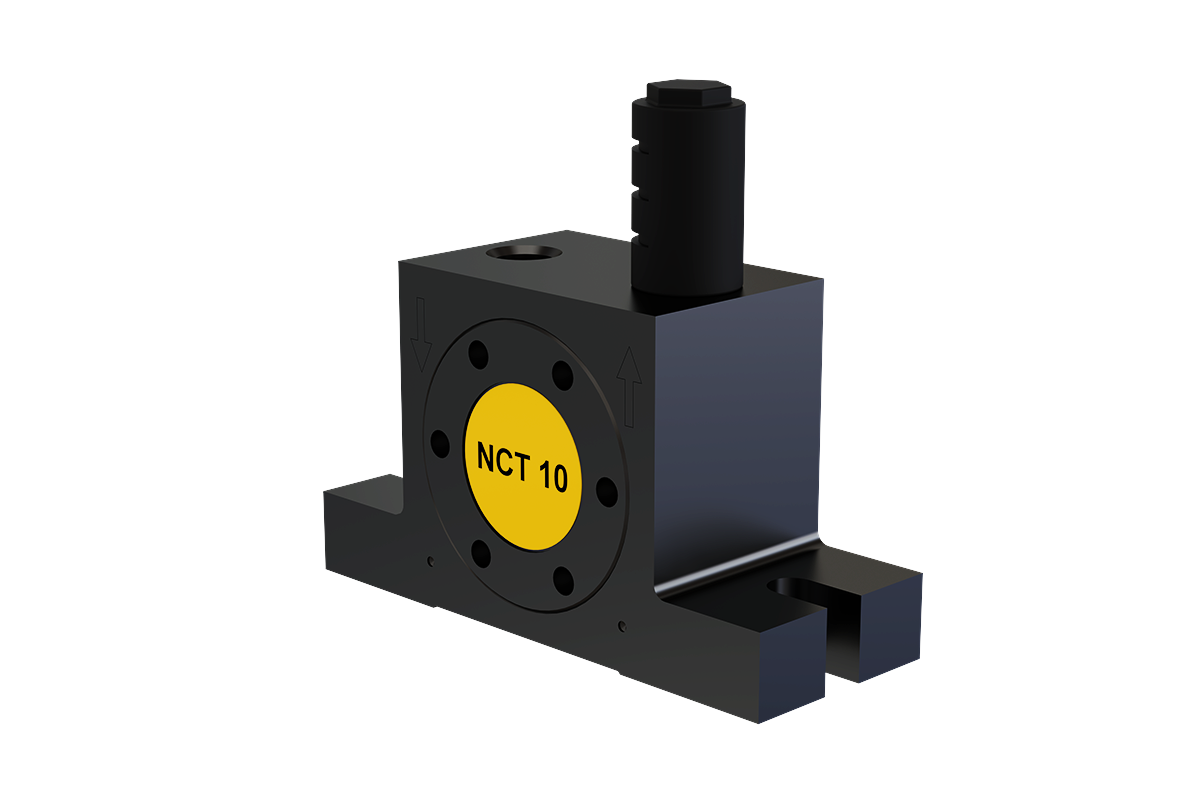 Die Serie NCT Druckluft-Turbinenvibratoren erzeugt kreisförmige Schwingungen durch eine exzentrisch gelagerte Turbine mit integrierten Unwuchtgewichten. Die Frequenz und Fliehkraft sind stufenlos über den Betriebsdruck regelbar, was eine flexible Anpassung an unterschiedliche Anwendungen ermöglicht.
