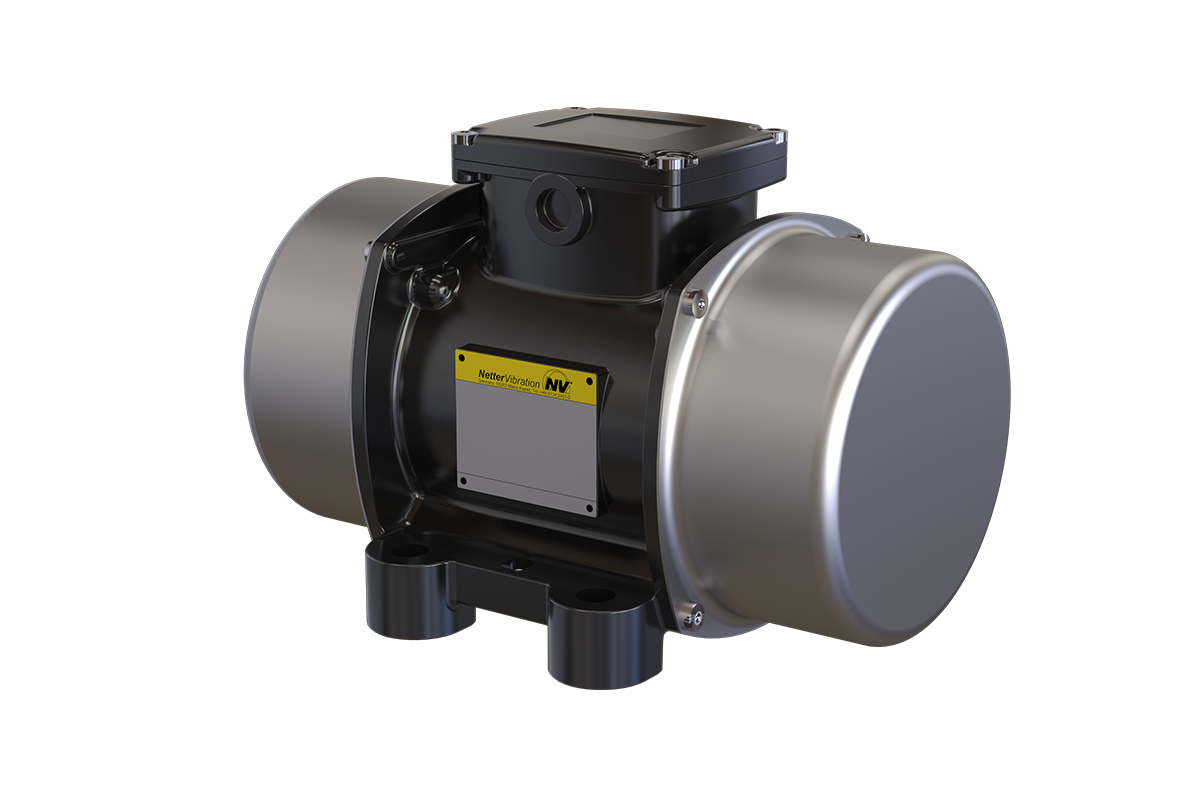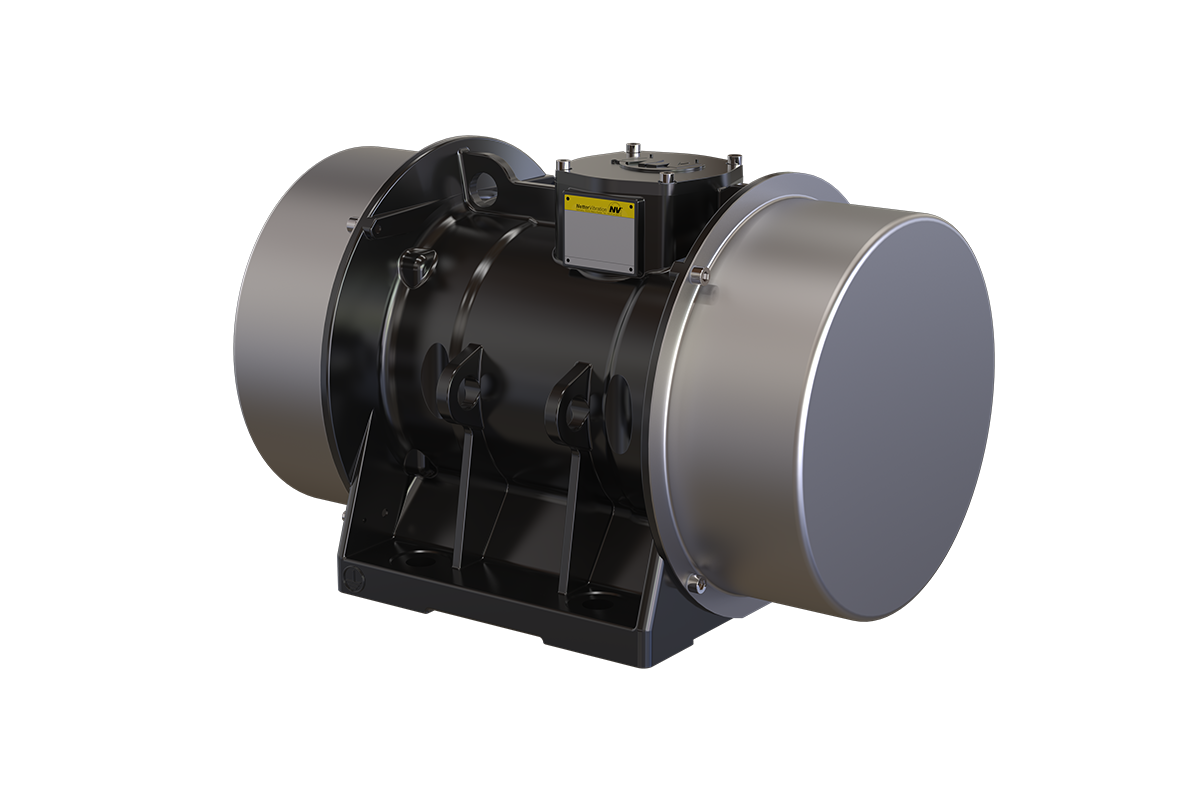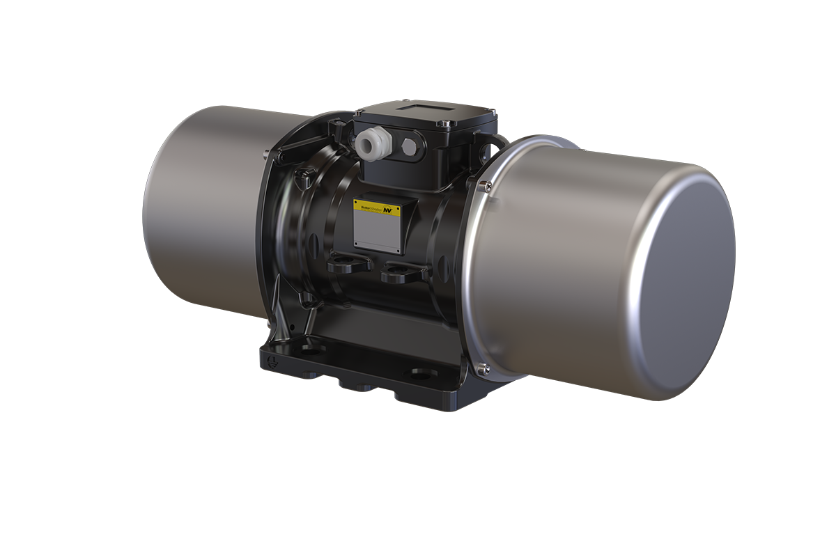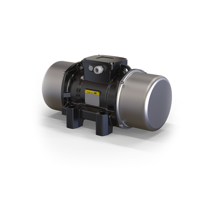 Der Antrieb erfolgt über einen dreiphasigen Asnychronmotor, der mit einer Spannung von 230/400 V (50 Hz) betrieben werden kann. Je nach Polzahl und Netzfrequenz erreichen die Geräte Drehzahlen zwischen 750 und 3.000 min⁻¹ (bei 60 Hz ca. 20 % höher). Über beide Wellenenden einstellbare Unwuchten erzeugen eine kreisförmige Vibration, die zuverlässig und gleichmäßig auf das angeschlossene Bauteil übertragen wird. Alle Geräte sind für den Betrieb mit Frequenzumrichtern geeignet und der Klemmkasten ist im Gehäuse integriert.