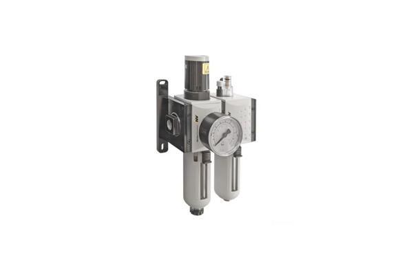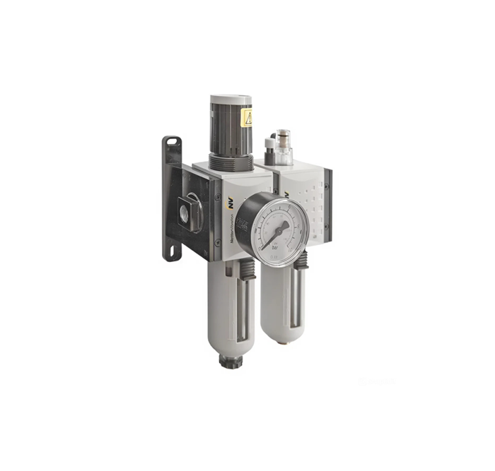 Filterreglereinheit der Serie NFR – beinhaltet einen 5 µm Filter im Druckregler und Kondensatbehälter, um die Druckluft zu reinigen und den erforderlichen Luftdruck zu liefern.
